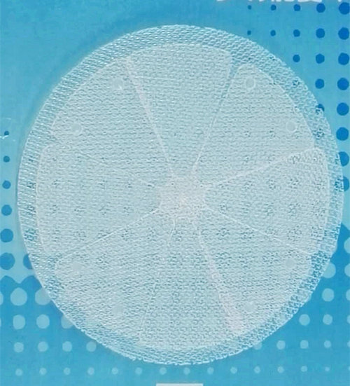 2) 單絲股網(wǎng)片結(jié)構(gòu),確保補片邊緣不宜脫漏、其固位性好,無可濕性,不吸收,完全符合長久性植入材料要求。